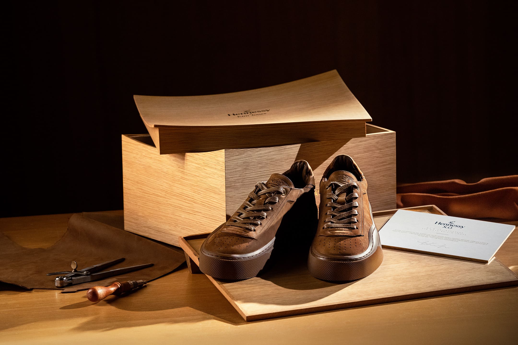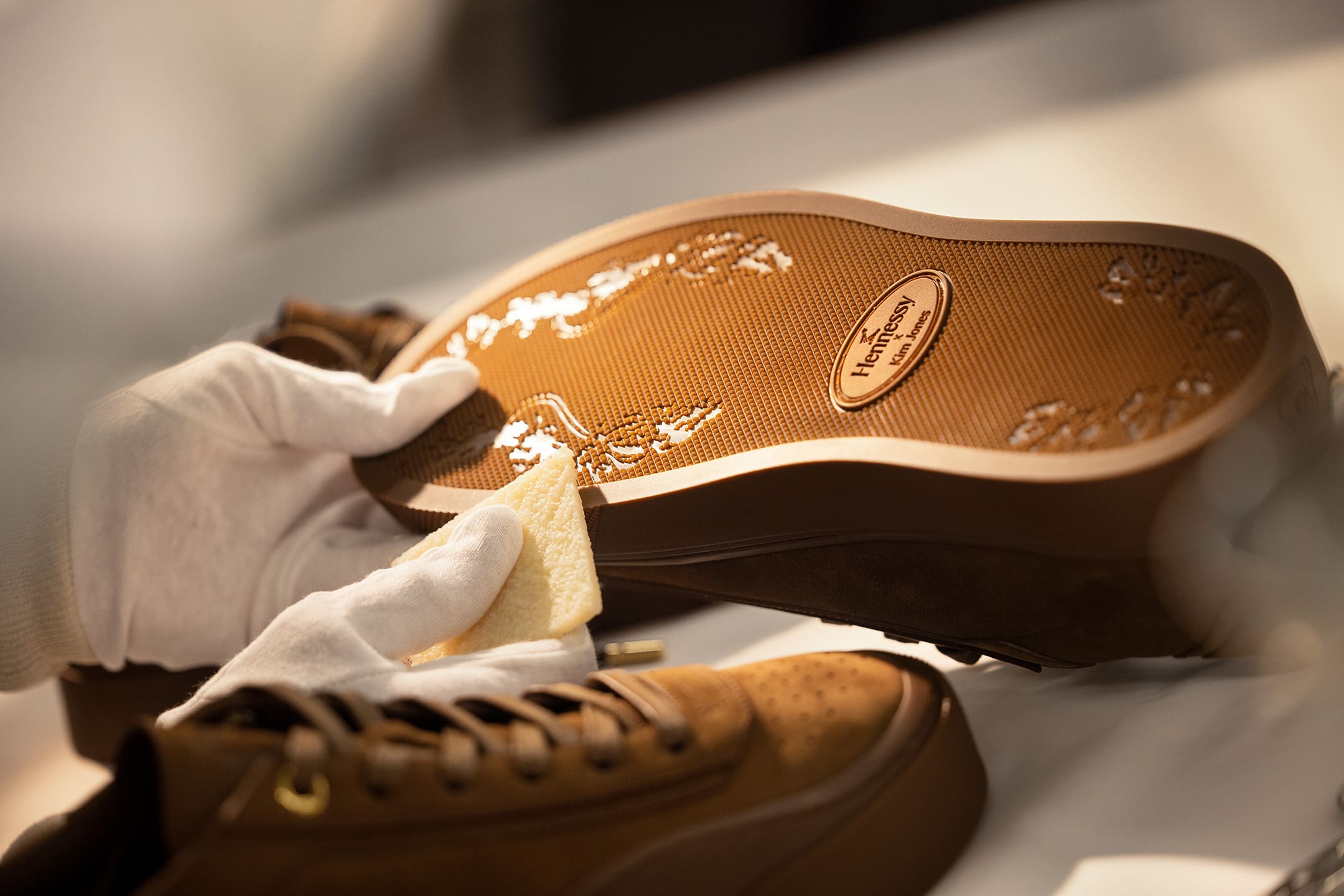 将球鞋的现代化机械生产过程与干邑酿造的匠心酿造技艺相融合,轩尼诗 X.O 金·琼斯大师典藏版在传统与现代之间架起了桥梁。